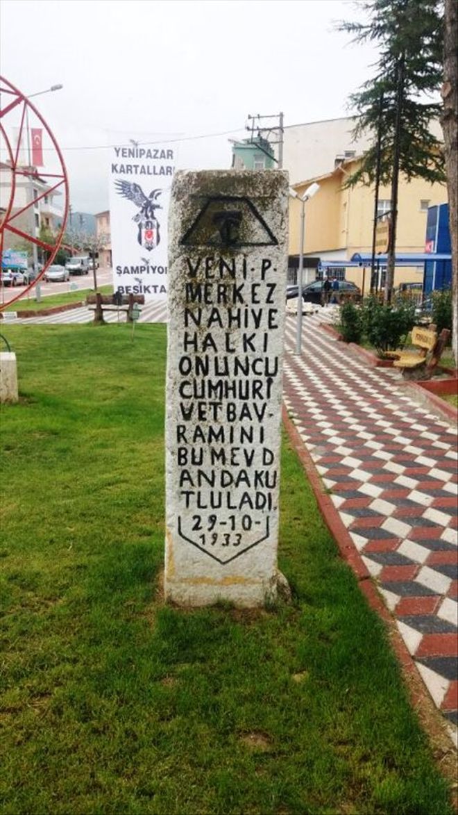 Yenipazar´ın tarihsel niteliği olarak çok önem taşıyor Anıttaş. Yazı metni aynen şöyledir: "YENİ.P. MERKEZ NAHİYE HALKI ONUNCU CUMHURİYET BAYRAMINI BU MEYDANDA KUTLULADI. 29.10.1933" Görüldüğü gibi Cumhuriyet Bayramını bu meydanda "kutladı" demiyor, "KUTLULADI" diyor.