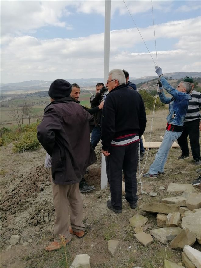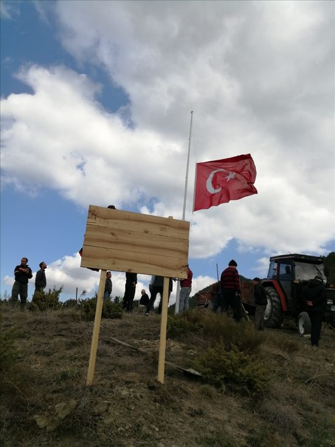 Mesire alanı düzenlenip fıstık çamları dikilince önceden hazırlanan uzuun bir bayrak direği de dikildi Meşeme. Göndere al bayrak da çekilince milli duyguları kabaran gençler hep birlikte İstiklal Marşı´nı da okumayı ihmal etmediler.