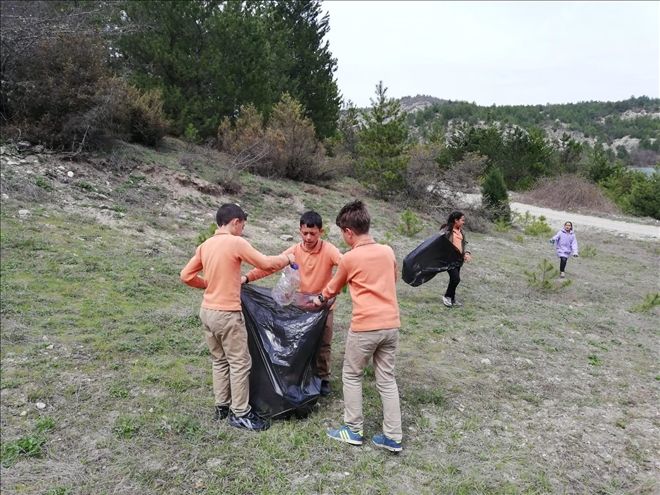 Gölete piknik yapmaya gelenlerin çevreye attıkları poşet, cam, plastik şişe ve kutuları temizleyen öğrenciler, piknikçilerin biraz daha duyarlı davranmalarını istediler. Evlerinde anne ve babalarını temiz çevre için mutlaka uyaracaklarını söylediler.