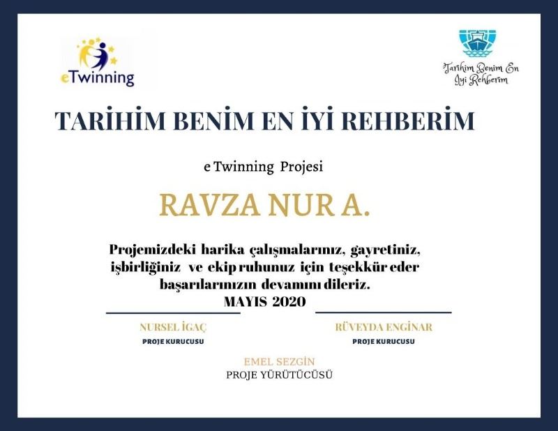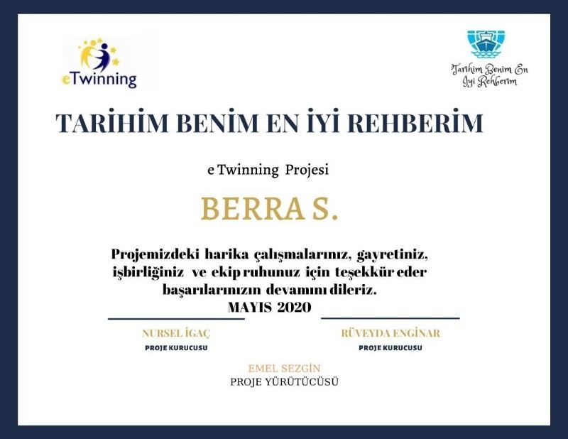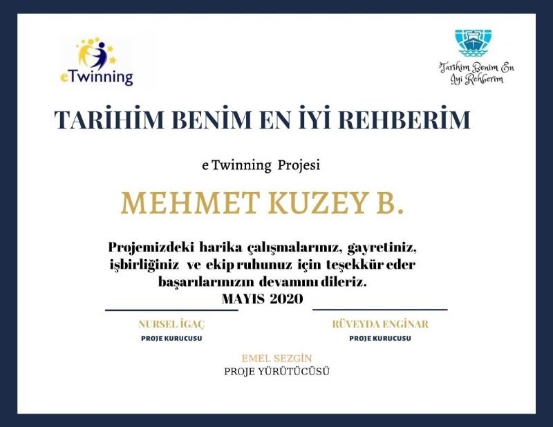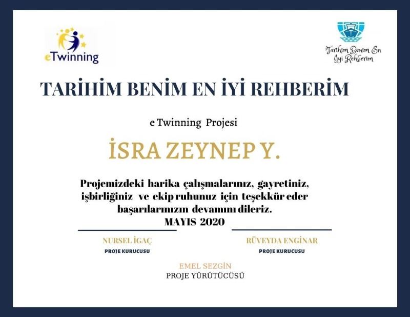 Eskişehir Dumlupınar İlkokulu öğretmeni ve hemşehrimiz Emel Sezgin ve öğrencileri, 2019-2020 eğitim öğretim yılı Ocak 2020 de çalışmaya başladığı Tarihim Benim En İyi Rehberim adlı e Twining projesini başarıyla tamamladılar.