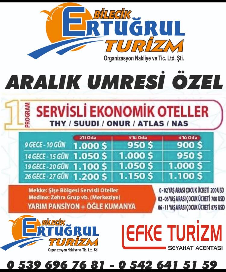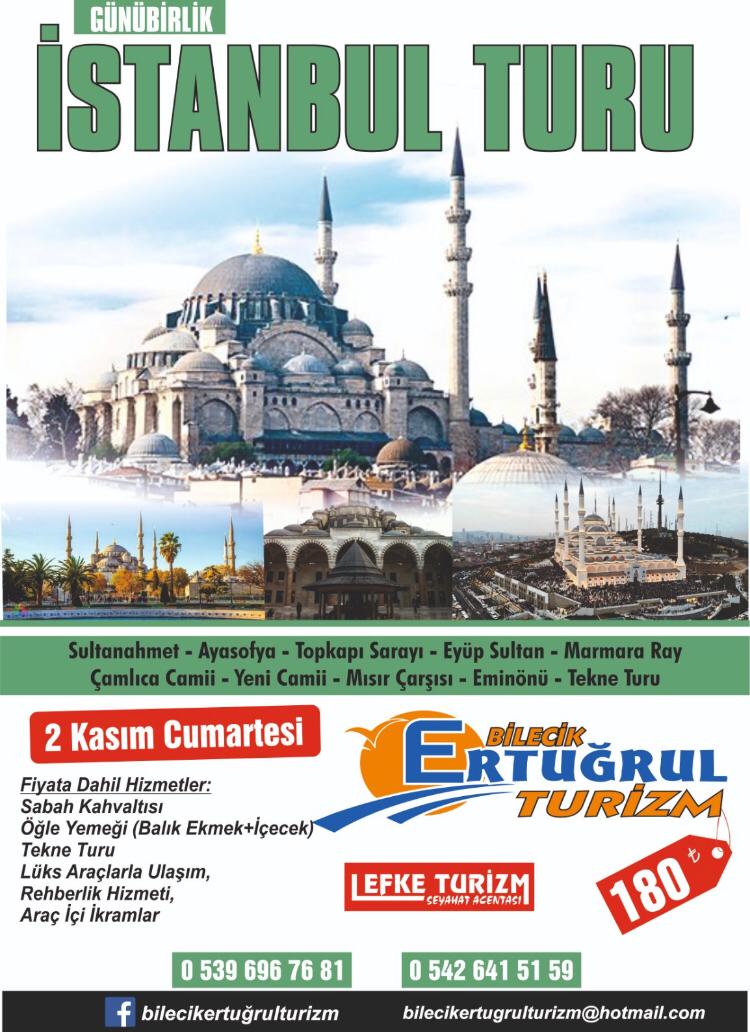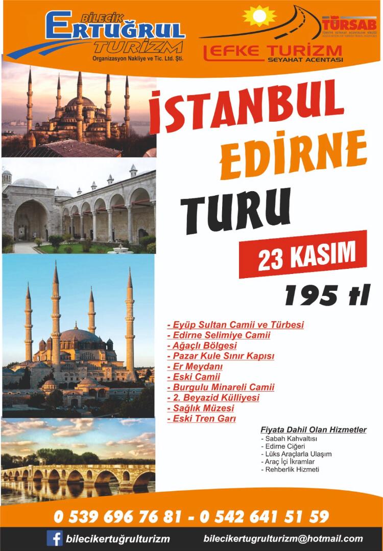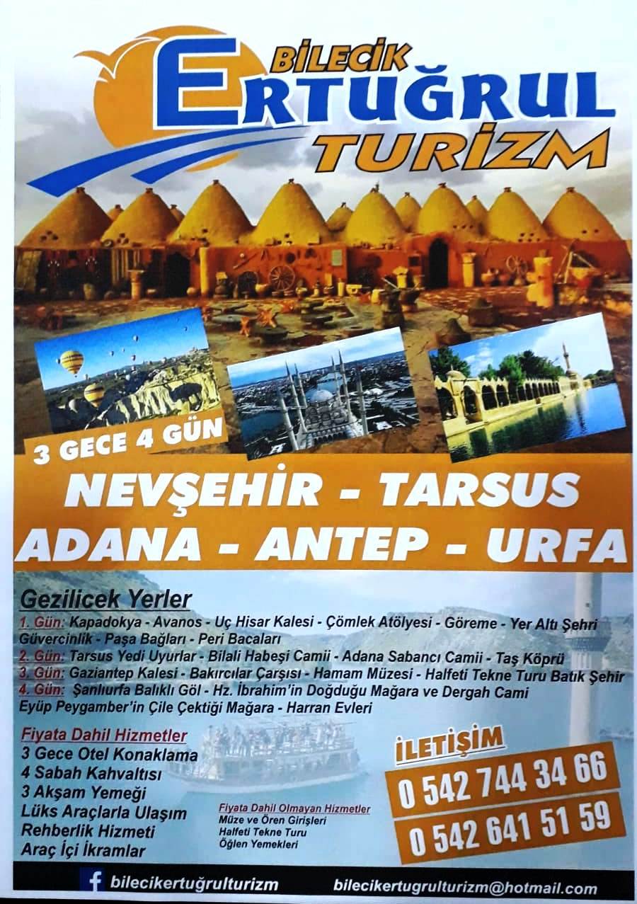 Bilecik'in gözde turizm şirketi Ertuğrul Turizm, uygun fiyat ve konforlu araçlarıyla yaşamınıza renk katacak turlar düzenlemeye devam ediyor.