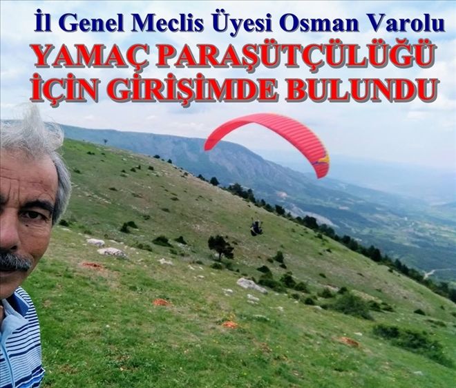 Yenipazar İl Genel Meclis Üyesi Osman Varolu, turizm elçisi gibi çalışmaya devam ediyor. Yenipazar (Harmankaya) Kanyonu için verdiği çabalarının yanında şimdi de Gölpazarı Çengeller Köyü sınırları içinde ve Gökçeler Köyü´nün de sırtını yasladığı bin 300 rakımlı Hasan Dağı´nda yamaç paraşütü yapılabilmesi için Bilecik İl Özel İdaresi İl Genel Meclisi´ne önerge sundu.