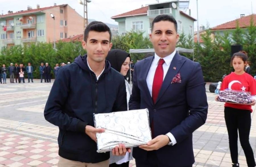 Gölpazarı Şehit Kemal Ay Anadolu Lisesi 12'nci sınıf öğrencisi Koray Zencir, Cumhuriyet'in 96'ncı yılını kutlamaları kapsamında, Gölpazarı İlçe Kompozisyon Yarışması 1'incilik ödülünü, Gölpazarı Kaymakamı İbrahim Güneş'in elinden aldı. Son girdiği 8 yarışmanın neredeyse tamamında dereceye giren Koray Zencir'i kutluyoruz.