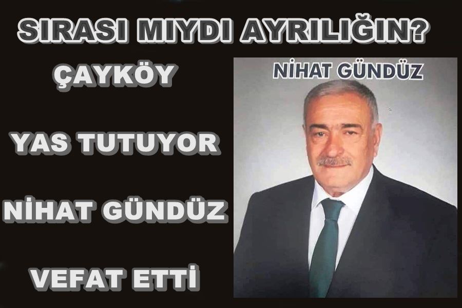 Nihat Gündüz'ün cenazesi 4 Aralık 2019 çarşamba günü ikindi namazından sonra Çayköy Köy Camiinden kaldirilarak aynı köyde defnedilecektir.