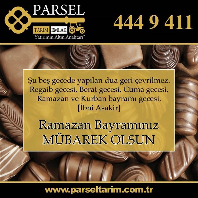 Yaptığı çalışmalarla beğeni kazanan Parsel Tarım, 25 Haziran 2017 günü başlayıp 3 gün sürecek olan Ramazan Bayramınızı kutluyor. Bilindiği gibi Ramazan Bayramı diğer adıyla Şeker Bayramı, oruç tutma ayı olan Ramazan´ın ardından 3 gün boyunca kutlanan dini bir bayramdır. Bayramın ilk gününde camilerde erkekler bayram namazı kılar. Ramazan Bayramında Müslümanlar birbirlerinin bayramını kutlayarak aralarındaki sevgi ve saygı bağını daha da güçlendirirler. Bu nedenle geleceğin yatırımcısı Parsel Tarım herkesin bayramını kutluyor.
