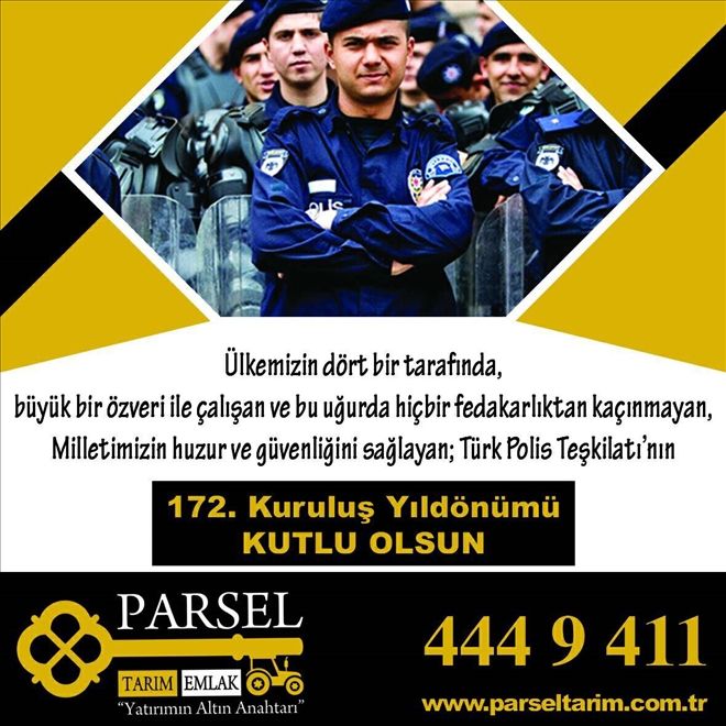Parsel Tarım Emlak tüm özel günleri olduğu gibi Polis Teşkilatının da kuruluş yıldönümünü kutlamayı unutmadı; gönderdiği mesajda 172. Kuruluş yıldönümünü şöyle kutladı: