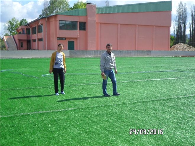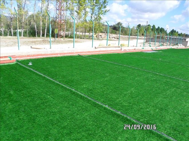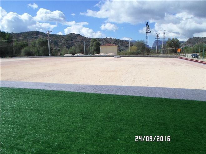 Spor Toto Teşkilatı fonundan sağlanan maddi destek ile yapımına başlanan mevcut toprak sahanın sentetik sahaya çevrilmesi ve seyirci tribünü yapılmasına yönelik çalışmalarda sona yaklaşılıyor.