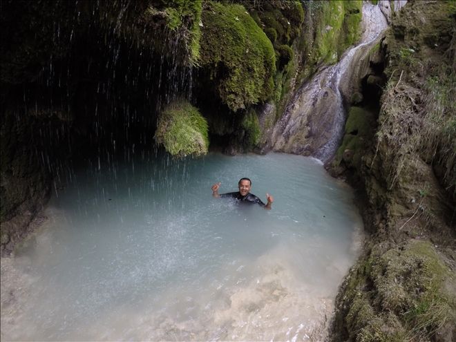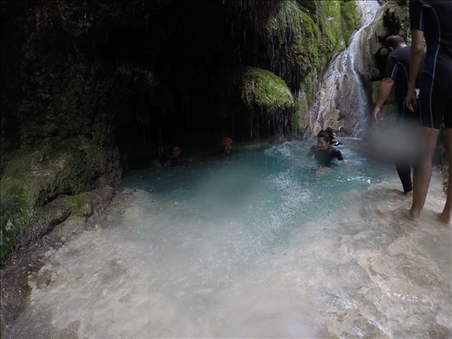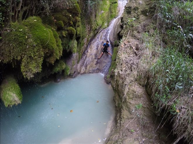Şelaleden iple inmek için gerekli hazırlıkları yaptıktan sonra, kontrol amacıyla bir iniş yaptık. Aslında tüm ekibi şelaleden indirmeyi düşünüyorduk ancak bunun şelaledeki doğal yapıya zarar vereceğini gördükten sonra bu planımızdan vaz geçtik ve ekibi şelalenin altındaki gölde ve aynı gölün yaklaşık 300 metre altında bulunan, ikinci ve en az onun kadar güzel ve daha alçak bir şelalenin bulunduğu gölde serinletmeye karar verdik.