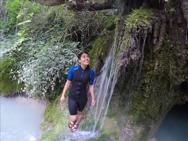 Bu sıcak ortamdan sonra araçlarımızla Suuçtu Şelalesini görmeye ve mümkünse şelaleden iple inmeye gittik. Şelale karşıdan görür görmez sizi büyülüyor. Soğuk sular yaklaşık 35 metre yüksekten ve yemyeşil bitkilerin arasından, turkuaz rengi bir göle dökülüyor. (Maalesef gölün etrafında ve şelalenin üst tarafındaki alanda piknikçilerin izlerini bolca görebiliyorsunuz.)