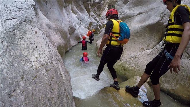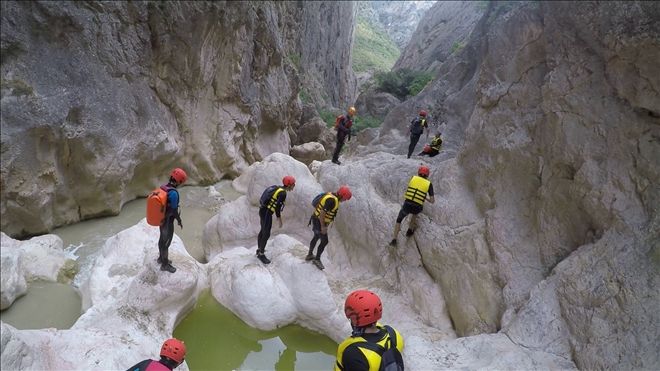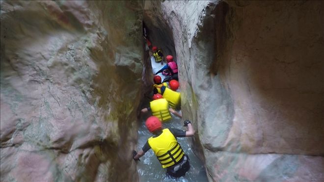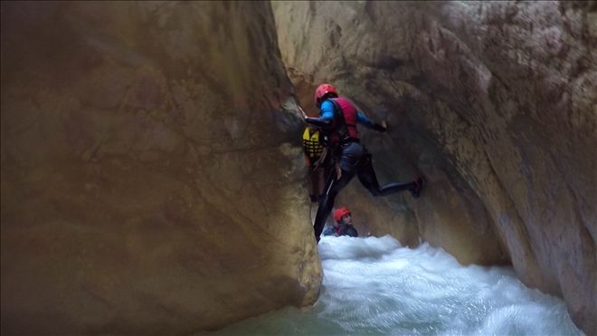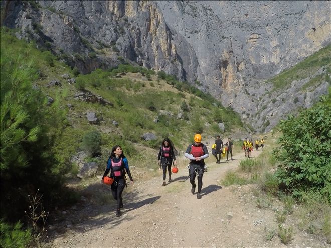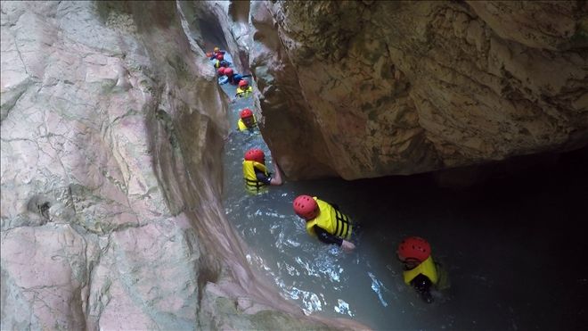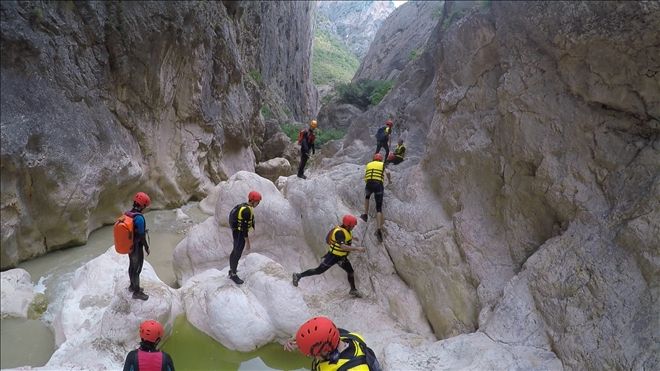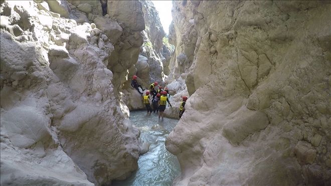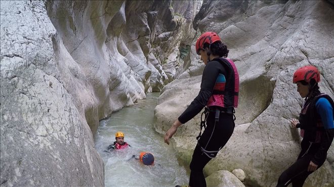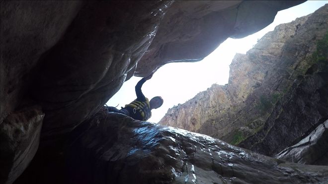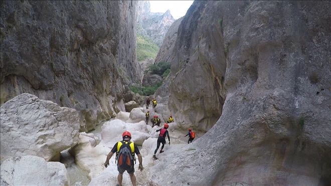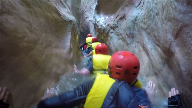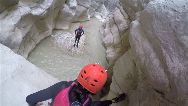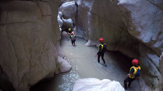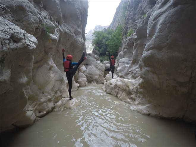 Kanyon içinde 2 adet 20 metre civarı ip inişi ve 2 adet de kısa ip inişi gerçekleştirdik. Ayrıca 2 adet sabit ip hattından emniyetli geçiş yaptık. Birçok kez çok yüksek olmayan yerlerden suya atlayışlar yaptık. Hepsinden önemlisi ilk defa bu deneyimi yaşayan katılımcılarla, muhteşem bir görsel keyif yaşarken, her hangi bir kaza ya da olumsuzluk yaşamadan, 5,5 saat sonra, saat 15.35´de, kanyondan çıktık. (Anlatılmaz yaşanır)