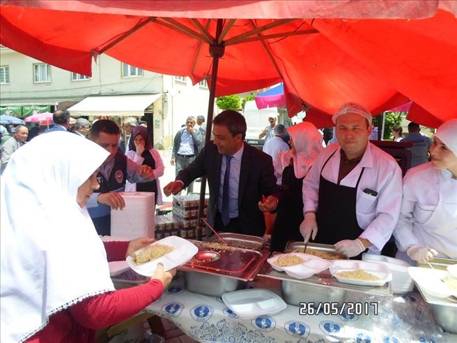 Yenipazar Kaymakamı Hamza Türkmen ve çok sayıda misafirin katıldığı Cumhuriyet Meydanı´ndaki etkinlik alanına kurulan masalarda pilavlar ikram edildi.