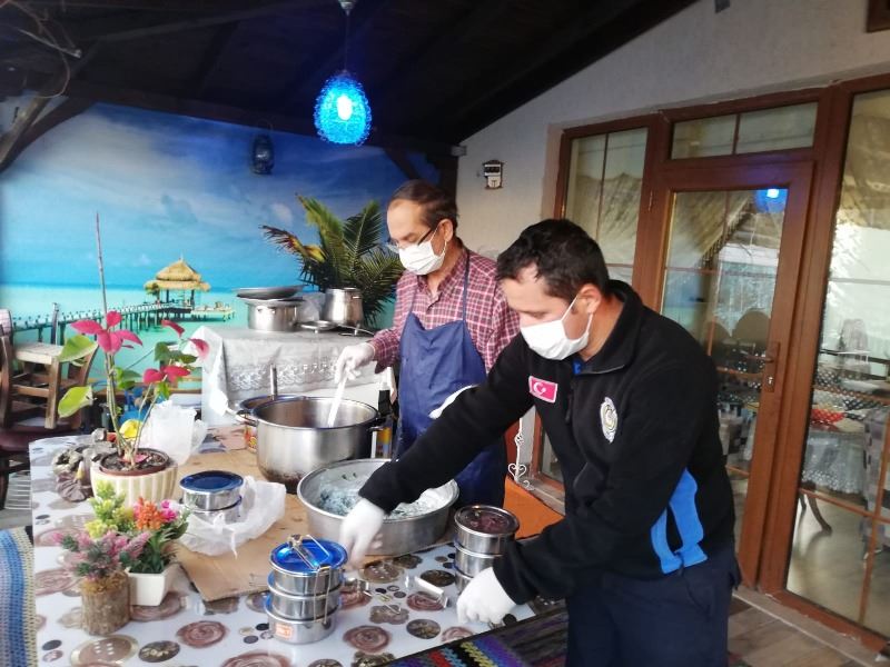 Merkez Lokantası’nda Burhan Güven tarafından günlük olarak hazırlanan 4 çeşit yemek, belediye personeli tarafından her gün iftardan 30 dakika önce sıcak sıcak evlere bırakılıyor.