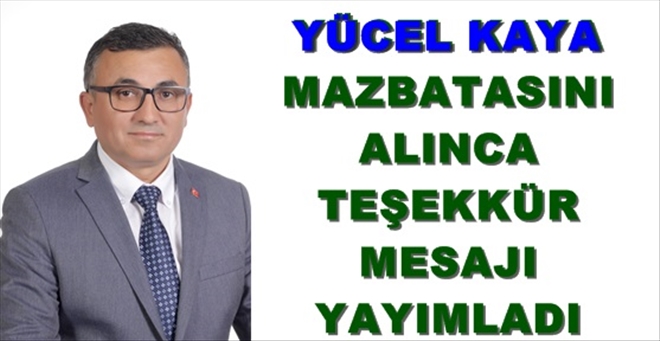 Adalet ve Kakınma Partisi Yenipazar İl Genel Meclis Üyesi Yücel Kaya, Mazbatasını alır almaz ilk işi yazılı olarak teşekkür mesajı göndermek oldu. Kaya mesajında: